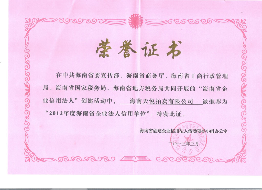 海南天悦拍卖有限公司HAINAN TIANYUE AUCTION CO., LTD