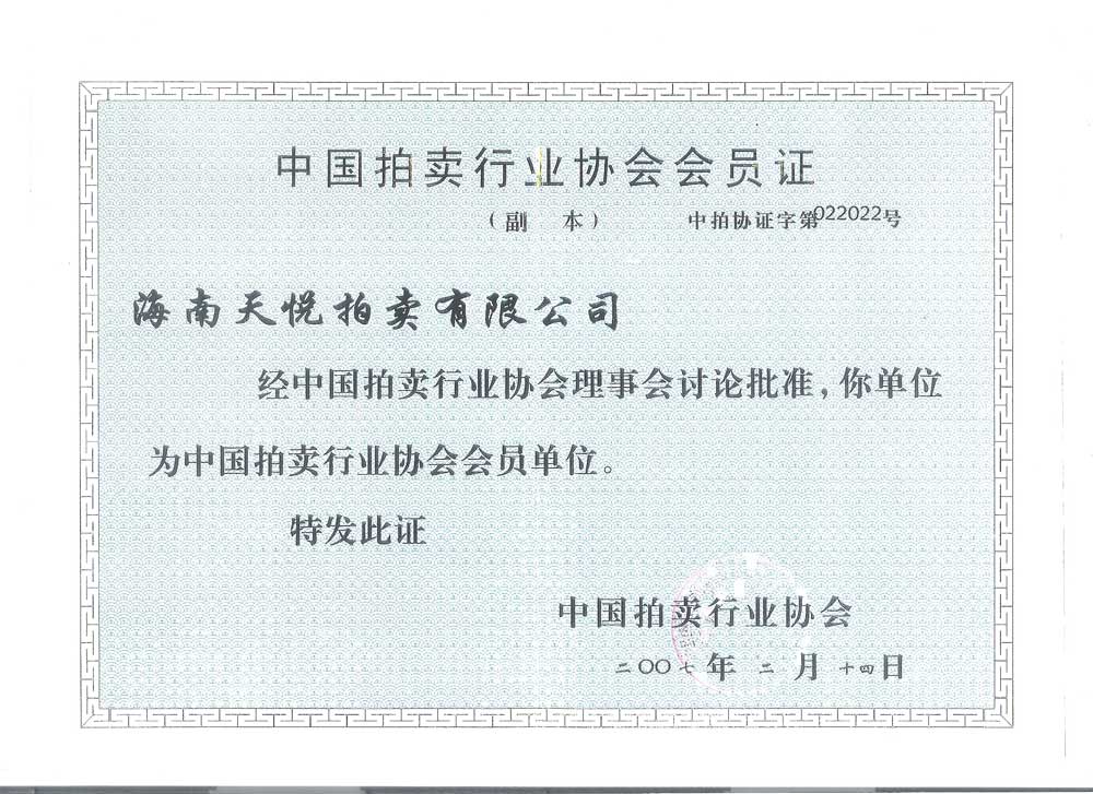 中国拍卖行业协会会员证