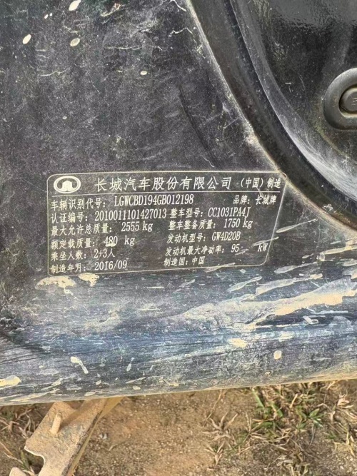车牌号为BY5328长城牌汽车一辆